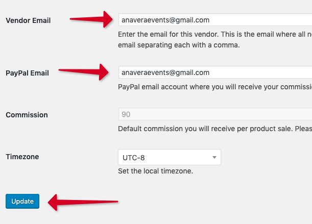 Confirm your email (for order info) and PayPal email is correct. Click Update!