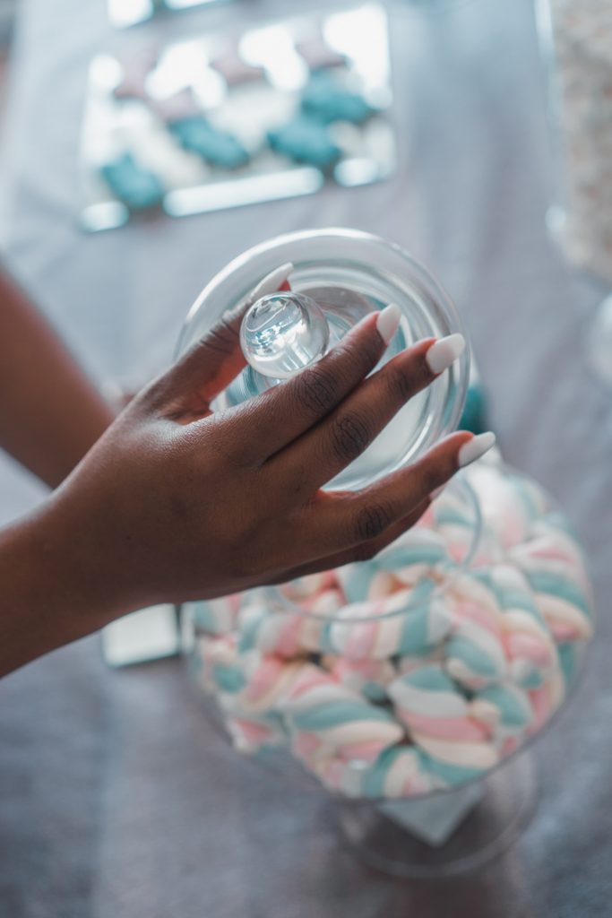 Everyone loves desserts! Whatever color combo you choose for your gender reveal, I’m sure you can find candies and desserts in that color. You can also add whatever color of sprinkles on to white frosted donuts to match the color theme. Some dessert options are cake pops, frosted sugar cookies, and chocolate covered strawberries.